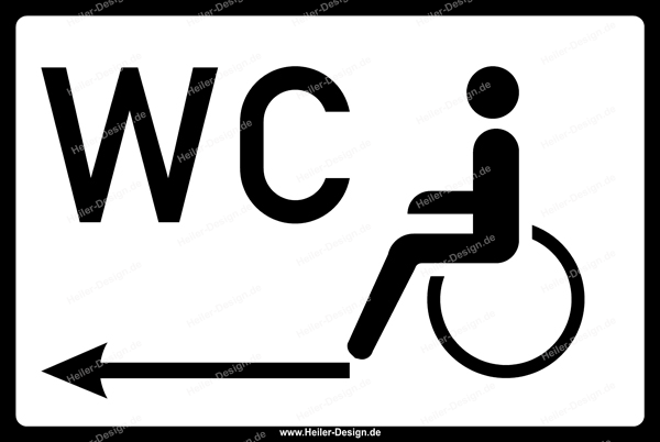 Wc schild mit pfeil nach links, toilettenschild linksweisend, wc aufkleber mit pfeil nach links, toilettenaufkleber linksweisend.